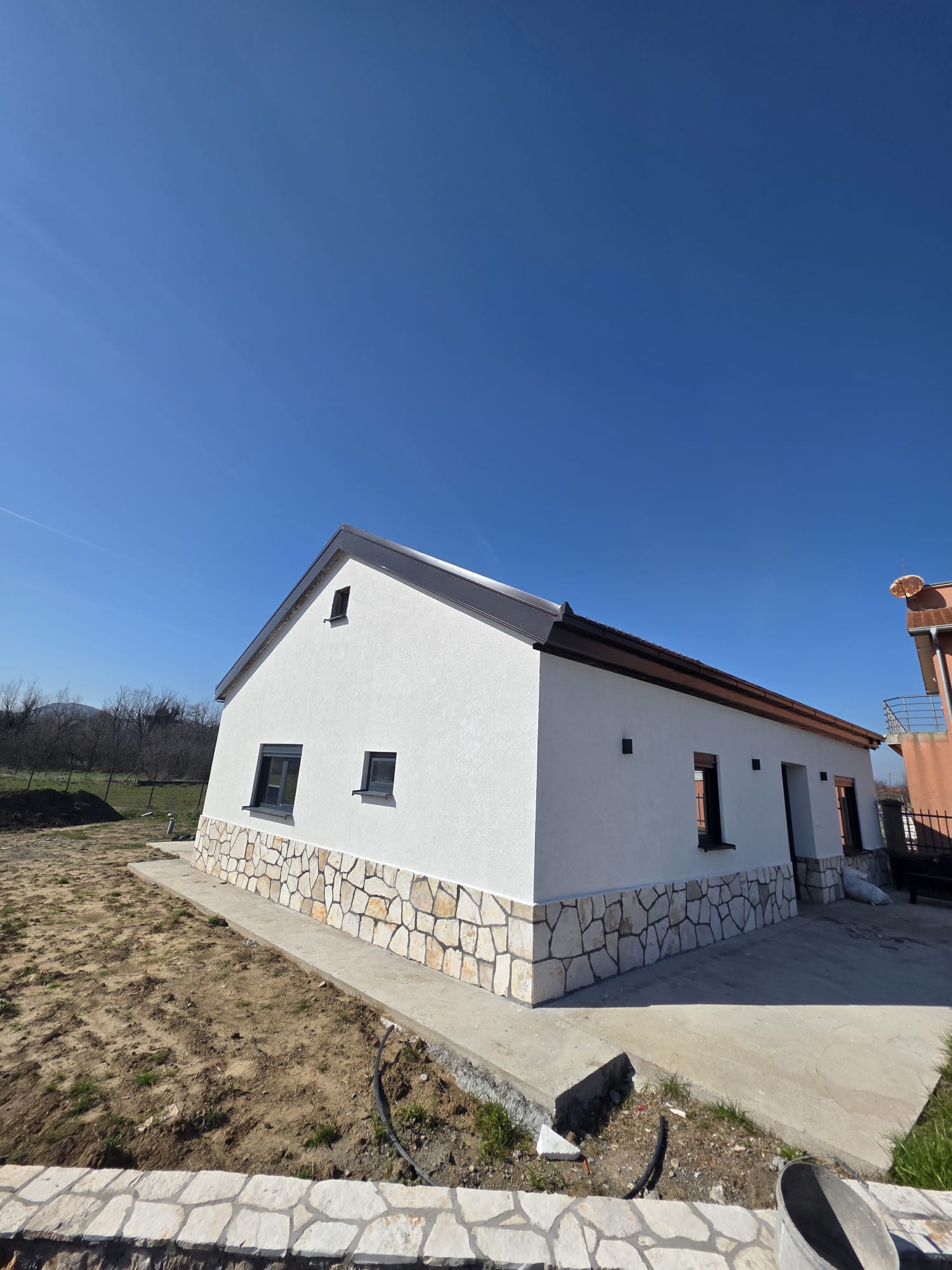 The house is built on 506m2, consists of 1 spacious living room, 1 bedroom, the balcony and 1 bathroom. In front of the house is a nice garden with the parking space. An amazing opportunity for someone who wants to live in a peaceful and a calm place.